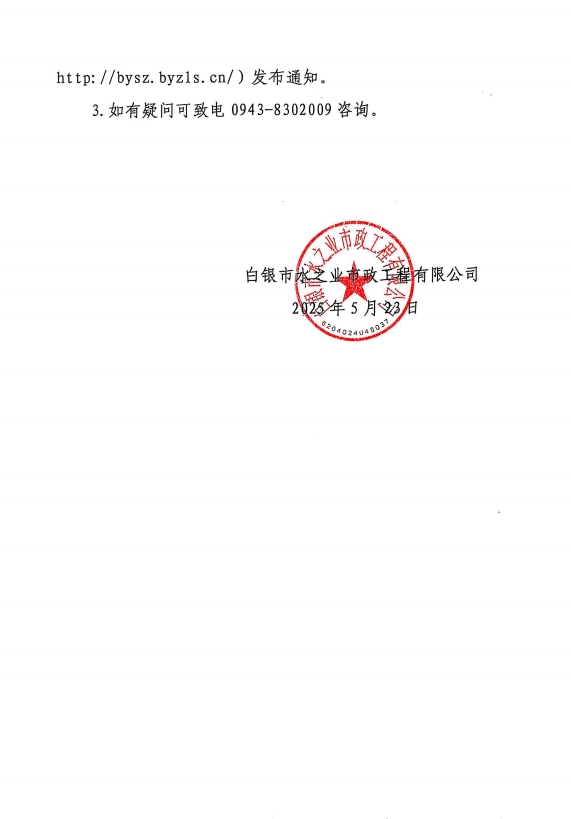白銀市水之業(yè)市政工程有限公司關于公開招聘人員考試的通知