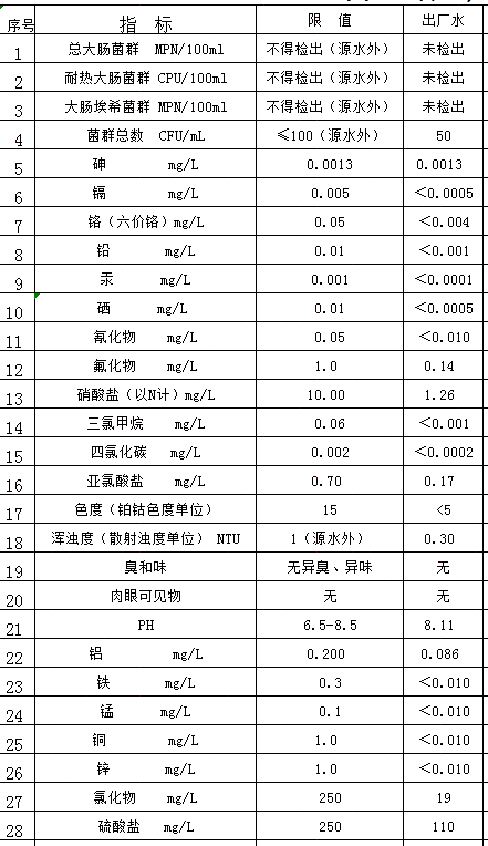 2020年3月出廠水檢測(cè)表