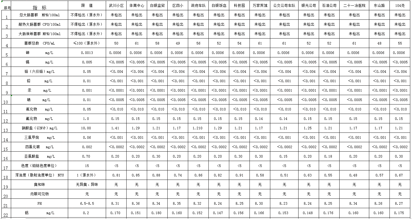 信息名稱 2020年4月用戶水龍頭水檢測表 發(fā)布機(jī)構(gòu) 白銀市給排水公司