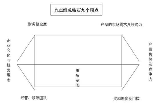 優(yōu)良的直銷公司必須同時(shí)具備九點(diǎn)要求,這九個(gè)要素組成了鉆石九個(gè)頂點(diǎn)。兼具九大要素的公司堅(jiān)若鉆石、才是值得與它合作的對(duì)象、才是可以永續(xù)經(jīng)營(yíng)的直銷公司: