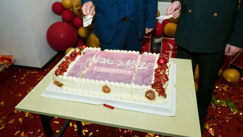 喬遷現(xiàn)場(chǎng),一款定制巨型蛋糕驚艷亮相,其上裝飾著公司標(biāo)識(shí)與“喬遷大吉”的鎏金大字。在眾人的矚目下,向總與周總共同執(zhí)刀,為大家分切這份甜蜜的喜悅。這一溫馨舉動(dòng),不僅分享了此刻的幸福,更寓意著全體同仁將同心協(xié)力,共啟未來(lái)的甜蜜篇章。