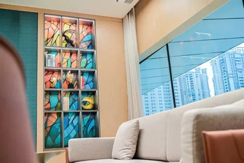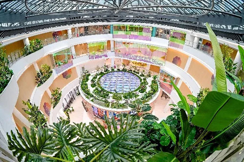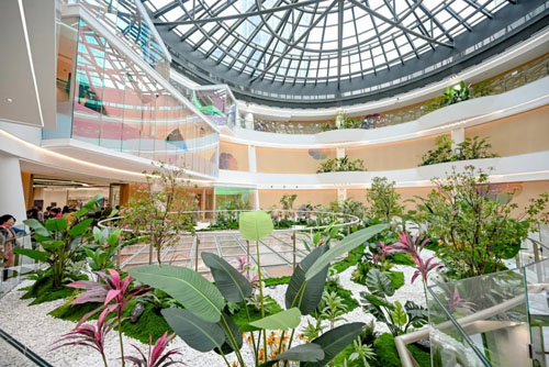 相比升級之前,全館社群活動空間擴(kuò)大了近一倍,并全新打造了花園式的270度植飲環(huán)廊、“美好劇場”、“共享盒子”、“紐崔萊空中花園”、“大健康檢測中心”、大型會議空間等區(qū)域,與眾多融入了廣府文化的“粵式”美花元素相映成趣,成為此次煥新的亮點(diǎn)。