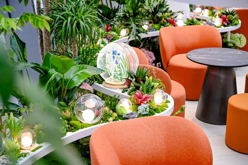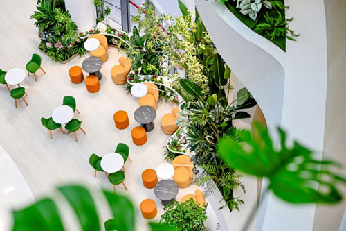 劇場上方精心打造了紐崔萊空中花園。它的旁邊,是二樓的紐崔萊品牌空間,集中呈現(xiàn)紐崔萊九十年的品牌歷史和研發(fā)實(shí)力,以及系列解決方案?;▓@與品牌空間珠聯(lián)璧合,讓人沉浸在紐崔萊的盎然綠意中。