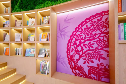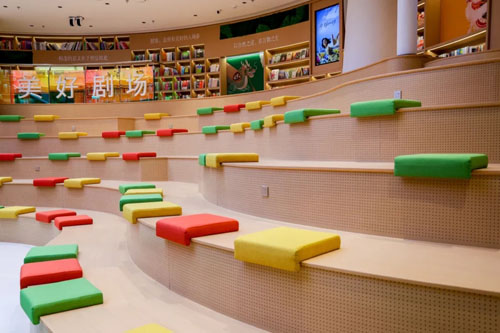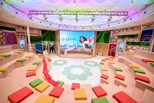 環(huán)形美好劇場可同時容納100多人,這里的千余冊藏書,是根據(jù)“身體健康”“情緒健康”“個人成長”等美花花瓣精心遴選的,場內(nèi)的非遺“粵繡”,同樣對應(yīng)著美花的各個花瓣,讓這里成為集中展現(xiàn)美花理念的地方。作為多功能的社群空間,這里特別聚氣,無論是TED演講,還是個性化表彰,都是不二之選。