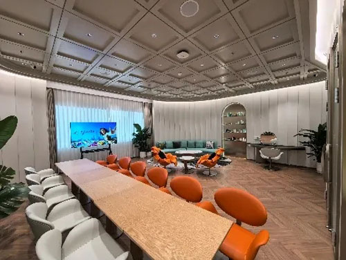 新館會議空間較升級前提升了220%。能夠容納260個標(biāo)準(zhǔn)座位的大會議室,以及場館內(nèi)十余間大小、功能各異的中小會議室組合,為伙伴們的會議、培訓(xùn)等需求提供了有力支持。