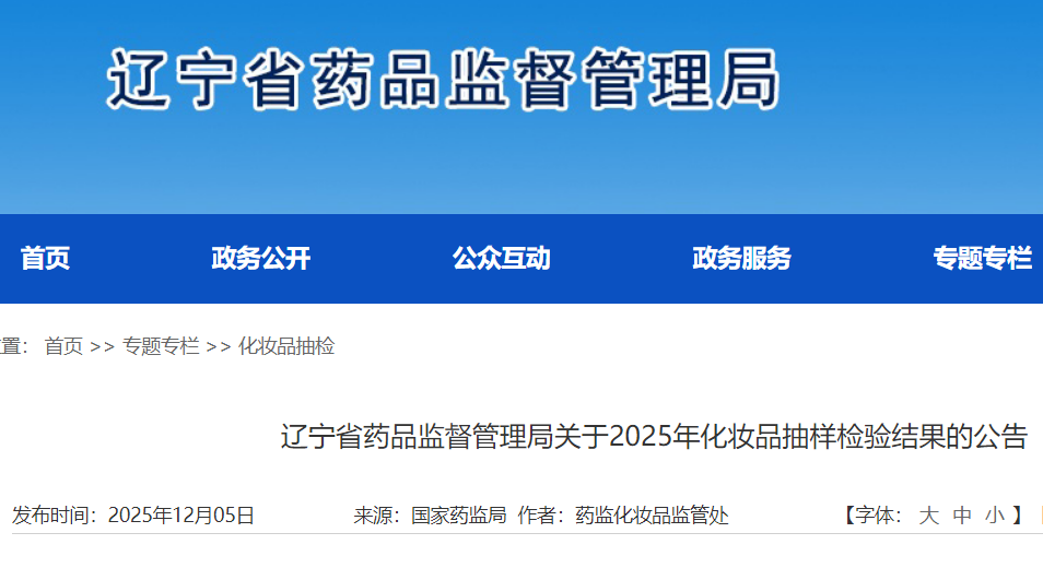 為加強化妝品質(zhì)量監(jiān)管,保障公眾用妝安全,根據(jù)《化妝品監(jiān)督管理條例》《化妝品抽樣檢驗管理辦法》等有關規(guī)定,依據(jù)2025年遼寧省化妝品抽樣檢驗計劃,省藥品監(jiān)督管理局組織對我省化妝品生產(chǎn)經(jīng)營環(huán)節(jié)進行了抽樣檢驗。本年度共抽樣檢驗化妝品122批次,發(fā)現(xiàn)不符合規(guī)定產(chǎn)品3批次。對抽檢發(fā)現(xiàn)的不符合規(guī)定產(chǎn)品,省藥品監(jiān)督管理局已完成核查處置。